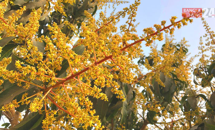 রাজশাহীতে মাঘের স্নিগ্ধ শীতেই গাছে গাছে স্বর্ণালি মুকুলের ঝিলিক। ছবি: শরীফ সুমন