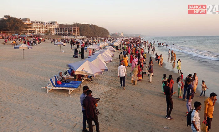 বিশ্বের দীর্ঘতম সমুদ্র সৈকতে পর্যটকদের ভিড়। ছবি: বাংলানিউজ