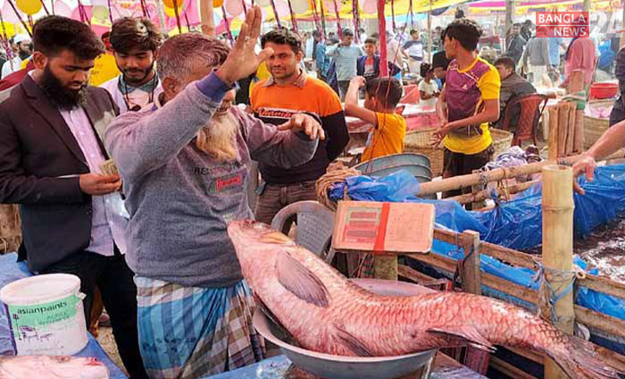 ঐতিহ্যবাহী ‘পোড়াদহ মেলা’য় বিক্রি হচ্ছে মাছ। ছবি: কাওছার উল্লাহ আরিফ
