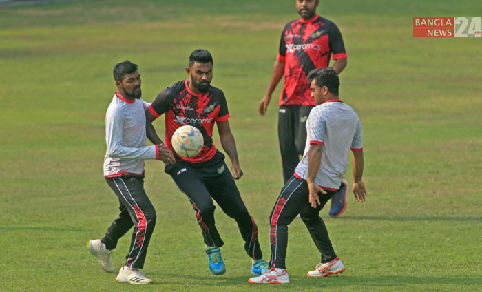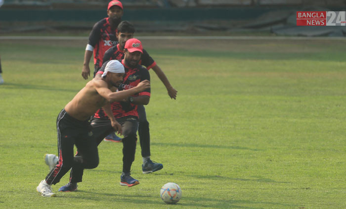 বিপিএল ফাইনালের আগে মাঠে ঘাম ঝরাচ্ছেন ক্রিকেটাররা। ছবি: শোয়েব মিথুন