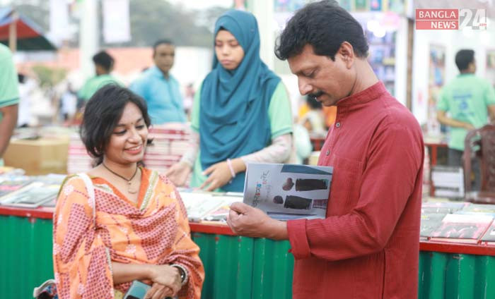বইমেলায় জমে উঠেছে লেখক-পাঠক প্রীতি। অমর একুশে বইমেলা থেকে ছবিটি তুলেছেন ডিএইচ বাদল