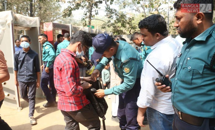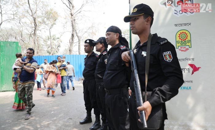 হামলার হুমকিতে কঠোর ও সতর্ক অবস্থানে আইন-শৃঙ্খলা বাহিনী। ছবি তুলেছেন ডিএইচ বাদল।