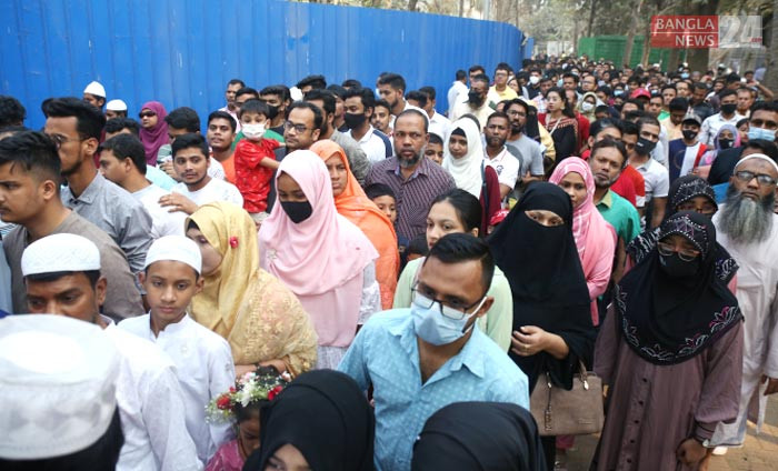 ছুটির দিনে হামলার হুমকি উপেক্ষা করে ক্রেতা-দর্শনার্থীদের আগমনে প্রাণবন্ত ও উৎসবমুখর বইমেলা প্রাঙ্গণ। ছবি তুলেছেন ডিএইচ বাদল।