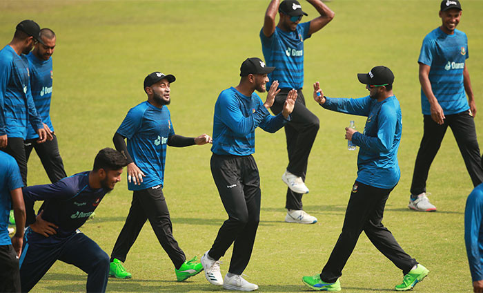 ইংল্যান্ড সফরকে সামনে রেখে অনুশীলন করতে বিকেলে মিরপুর শের-ই-বাংলা স্টেডিয়ামে জাতীয় ক্রিকেট দলের খেলোয়াররা। ছবি: শোয়েব মিথুন