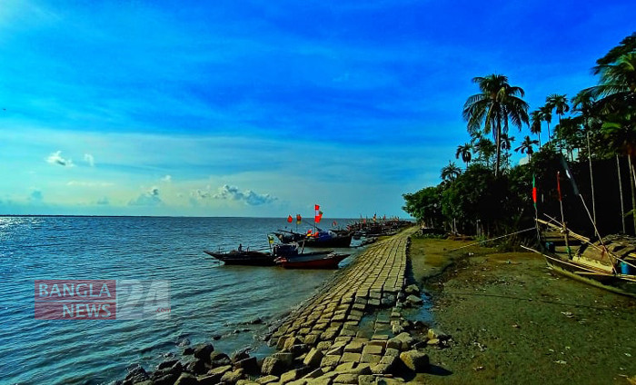 নীল আকাশ, শান্ত নদী আর সবুজের মহামিলন। এ যেন গ্রাম বাংলার চিরচেনা দৃশ্য। ছবি: জুনায়েদ আহমেদ