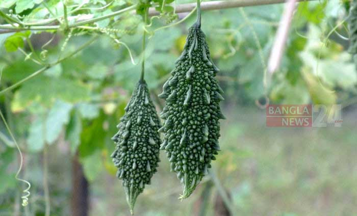 ক্ষেতের মাচায় ঝুলছে তিত করলা। ছবি: টিপু সুলতান