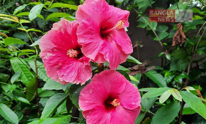 গাছে দুলছে জবা। ছবি: সুনীল বড়ুয়া