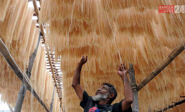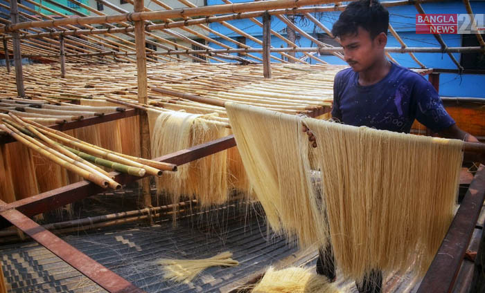 রোজা আর ঈদকে সামনে রেখে চট্টগ্রামের চাকতাই রাজাখালী এলাকায় বাড়ির ছাদে ছাদে সনাতনী পদ্ধতিতে তৈরি হচ্ছে বাংলা সেমাই। ছবি: উজ্জ্বল ধর