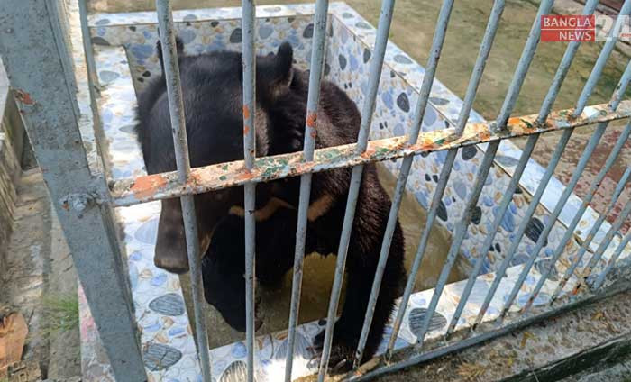 গরম সইতে না পেয়ে পানিতে নেমেছে ভাল্লুক। ছবিটি চট্টগ্রাম চিড়িয়াখানা থেকে তুলেছেন উজ্জ্বল ধর।