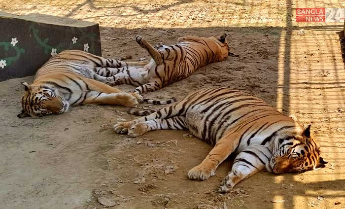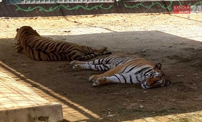 অসহনীয় গরমে কাহিল চট্টগ্রাম চিড়িয়াখানার বাঘ। ছবি: উজ্জ্বল ধর