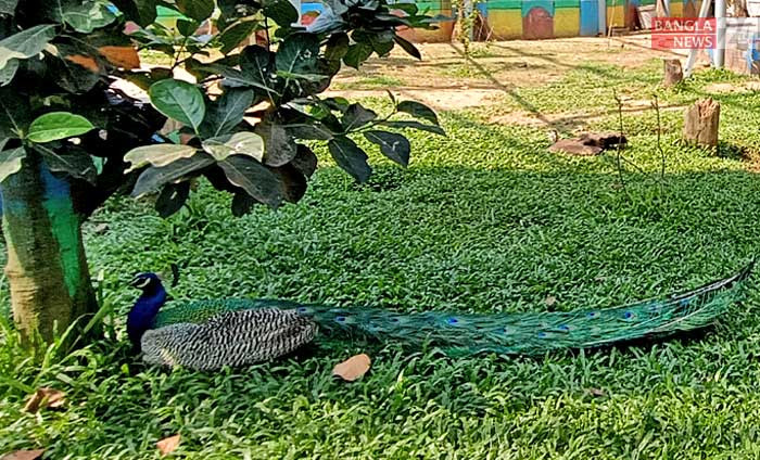 অসহনীয় গরমে গাছের ছায়ায় বিশ্রাম নিচ্ছে একটি ময়ূর। ছবিটি চট্টগ্রাম চিড়িয়াখানা থেকে তুলেছেন উজ্জ্বল ধর।