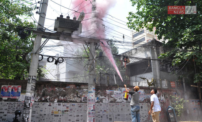 ঢাকা রিপোর্টার্স ইউনিটির সামনে ট্রান্সফরমার আগুন লাগার আগে নিভিয়ে ফেলল স্থানীয়রা। ছবি :শাকিল আহমেদ