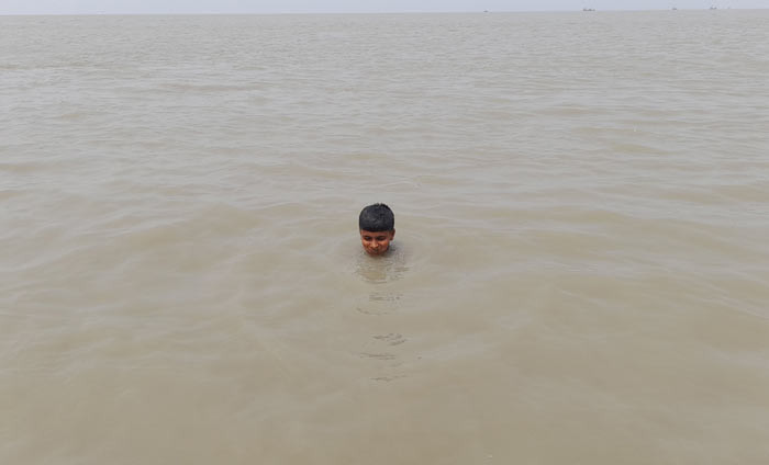 চৈত্রের খরতাপে ওষ্ঠাগত জনজীবন। গরম থেকে মুক্তি পেতে এক শিশু নদীর পানিতে সাঁতার দিচ্ছেন। ছবিটি লক্ষ্মীপুরের কমলনগর উপজেলার লুদুয়া এলাকার মেঘনা নদী থেকে তুলেছেন মো. নিজাম উদ্দিন।