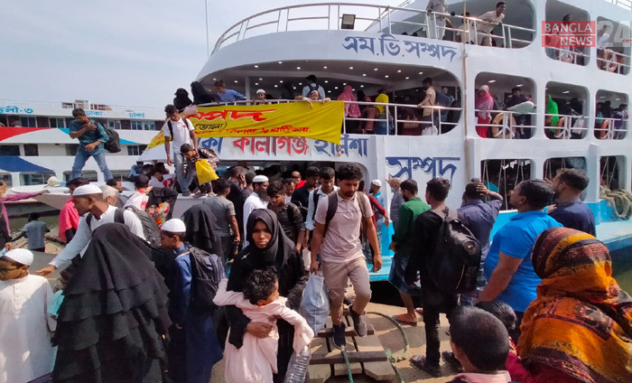 ছুটি শেষে নিজ নিজ কর্মে ফিরছেন রাজধানীবাসী। সদরঘাট থেকে তোলা। ছবি- ডি এইচ বাদল