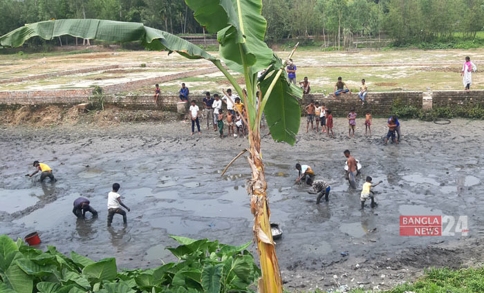 পুকুর সেচে মাছ ধরতেছে। সৈয়দপুরের নিয়ামতপুর থেকে ছবি তুলেছেন মো. আমিরুজ্জামান।