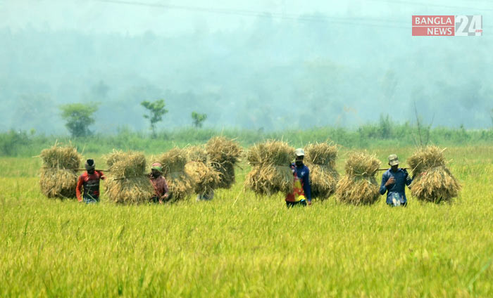 মাঠে মাঠে চলছে ধান কাটার উৎসব। পাকা ধান ঘরে তুলতে ব্যস্ত কৃষক। ছবিটি মাগুরা সদর উপজেলা মঘি ইউনিয়নের মঘি পশ্চিম পাড়া থেকে তুলেছেন জয়ন্ত জোয়াদ্দার।