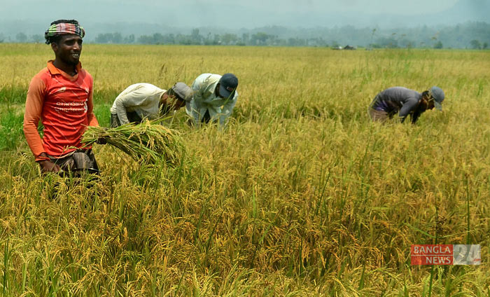 চট্টগ্রামের শস্য ভাণ্ডার গুমাই বিলে চলছে পাকা বোরো ধান কাটার উৎসব। ছবি: উজ্জ্বল ধর