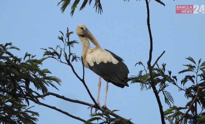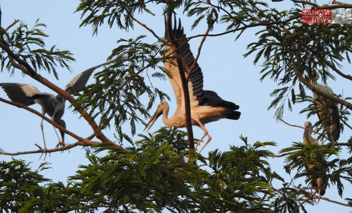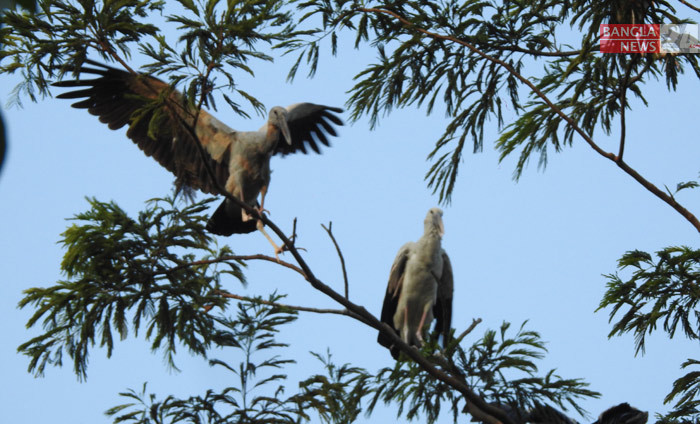 মাগুরার সদর উপজেলার সত্যপুর গ্রামে গাছে শামুখখোলা পাখির বসবাস। ছবি জয়ন্ত জোয়াদ্দার