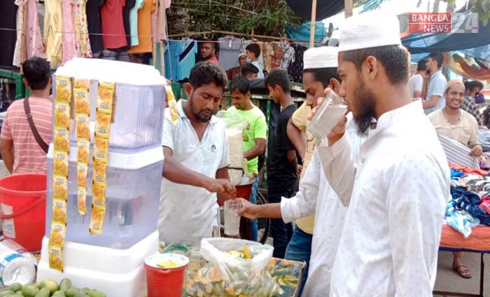 প্রচণ্ড তাপদাহে ফুটপাতের শরবতে তৃষ্ণা মেটাচ্ছে মানুষজন। গুলিস্তান এলাকা থেকে ছবি তুলেছেন শাকিল আহমেদ।