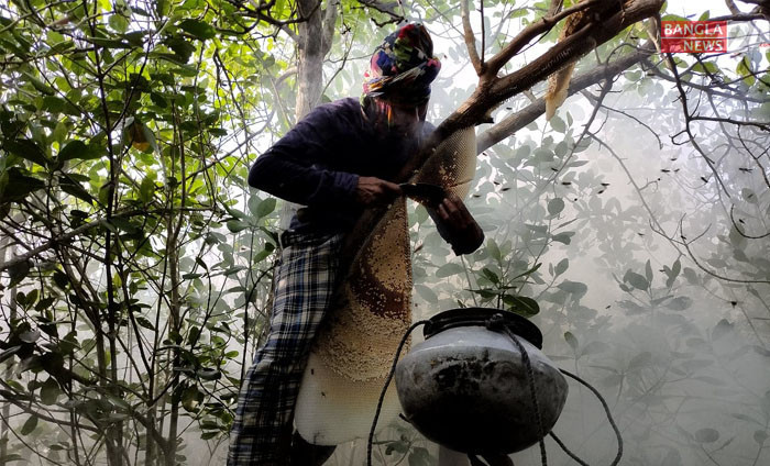 সুন্দরবনে মধু আহরণ মৌসুম শুরু হয়েছে। ছবিটি সুন্দরবন সাতক্ষীরা রেঞ্জের চুনা খাল এলাকা থেকে তুলেছেন শেখ তানজির আহমেদ।