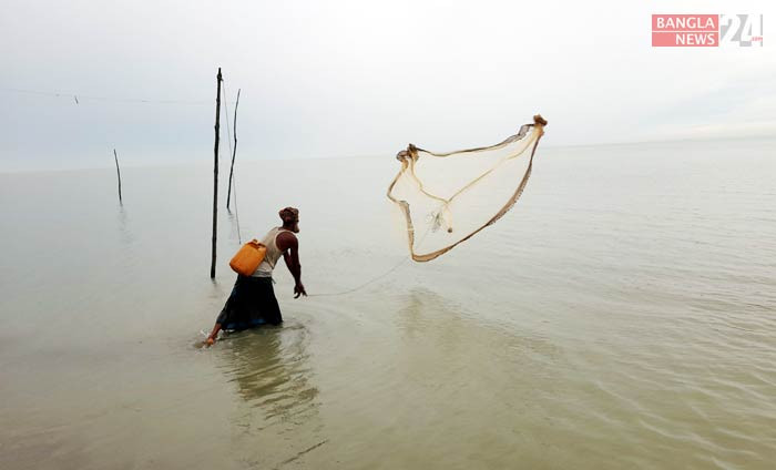 ৮ নম্বর বিপদ সংকেত উপেক্ষা করে মেঘনা নদীতে মাছ শিকার করছেন এক ব্যক্তি। ছবিটি আজ সকালে লক্ষ্মীপুরের কমলনগরের লুদুয়া এলাকা থেকে তুলেছেন মো. নিজাম উদ্দিন।