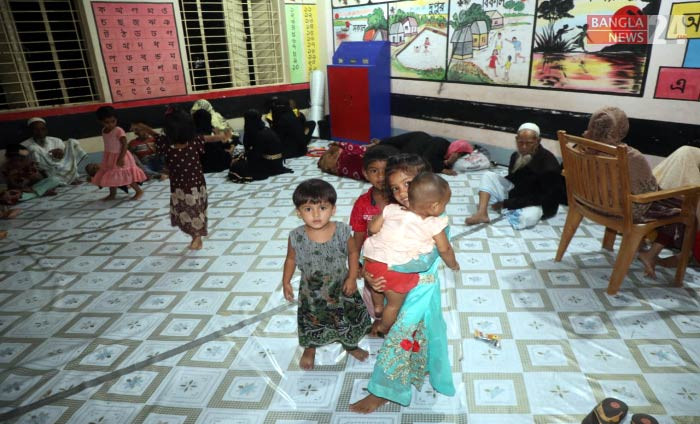 টেকনাফ মেরিন ড্রাইভ সড়কের পাশে মহেশ খালিয়া সরকারি প্রাথমিক বিদ্যালয় আশ্রয়কেন্দ্রে একজন লোকও আসেনি। রাত ১টার দিকে ছবি তুলেছেন উজ্জ্বল ধর।