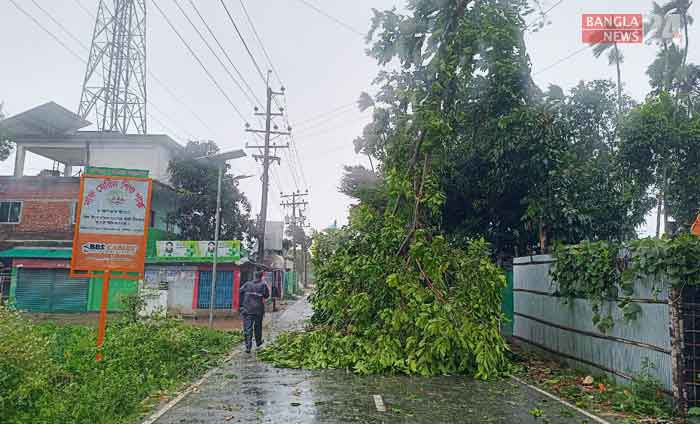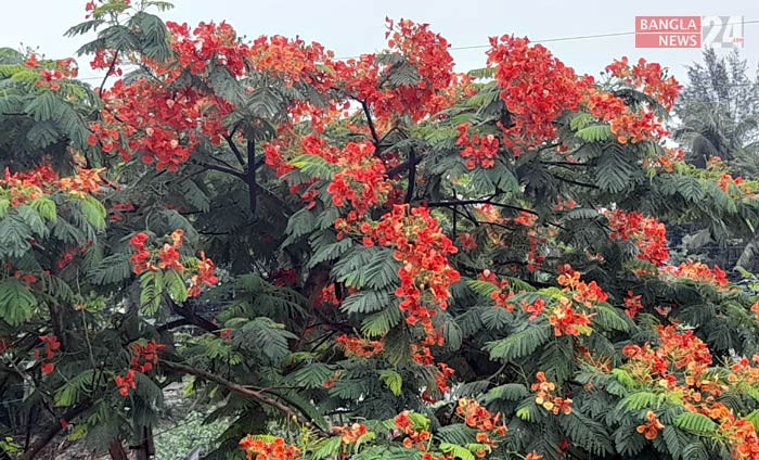বৃষ্টিস্নাত কৃষ্ণচূড়া ফুলের গাছ। ছবিটি লক্ষ্মীপুরের রামগতি উপজেলা পরিষদ প্রাঙ্গণ থেকে তুলেছেন মো. নিজাম উদ্দিন।