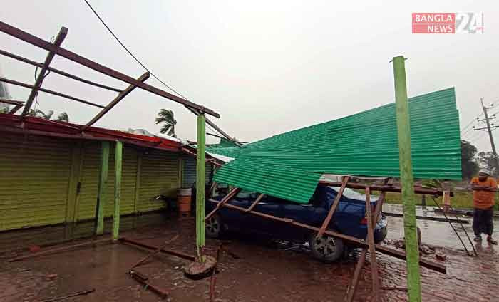 ঘূর্ণিঝড় মোখার তাণ্ডবে ক্ষতিগ্রস্ত হয়েছে ঘরবাড়ি। টেকনাফ পৌরসভার চিতাখোলা এলাকা থেকে ছবি তুলেছেন উজ্জ্বল ধর