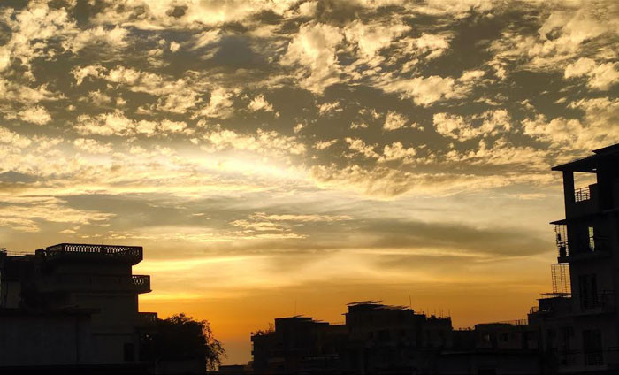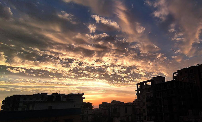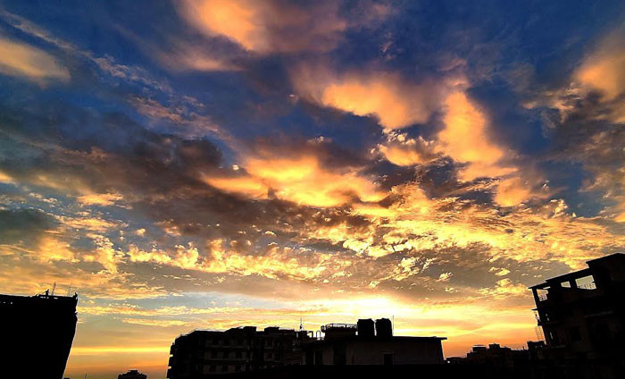 উপকূলীয় অঞ্চলে ঘূর্ণিঝড় মোখা, ঢাকার আকাশ বর্ণিল। ছবি তুলেছেন শোয়েব মিথুন