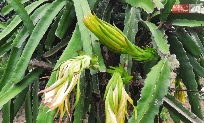 নাইক্ষ্যংছড়ির সোনাইছড়ি তরুপল্লব খামারে ড্রাগন ফলের মোহনীয়তা। ছবি: সুনীল বড়ুয়া।