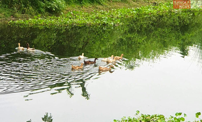বৃষ্টিতে ডোবায় জমা স্বচ্ছ পানিতে দল বেধে সাঁতার কাটছে হাঁস। ছবিটি ফরিদপুরের নদরকান্দা উপজেলার সুতারকান্দা গ্রাম থেকে তুলেছেন নাজমা খানম