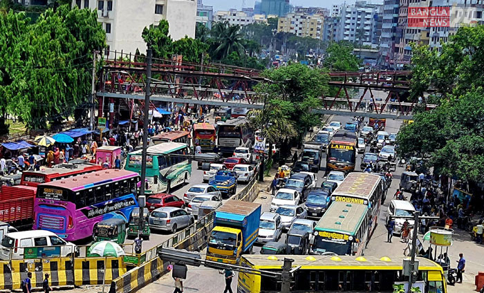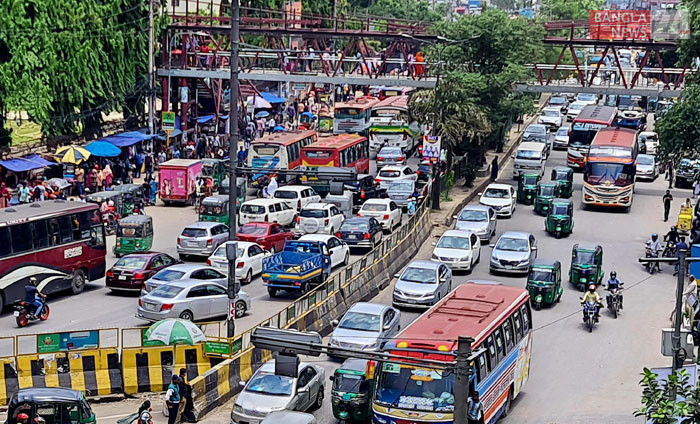 রাজধানীর মহাখালী এলাকায় যানজট। ছবি তুলেছেন জিএম মুজিবুর