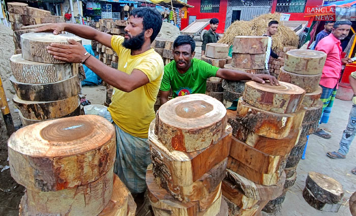 কোরবানির মাংস কাটার কাঠের ‘খাইট্টা’র কদর বেড়েছে। ছবিটি চট্টগ্রামের দেওয়ান হাট এলাকা থেকে তুলেছেন উজ্জ্বল ধর