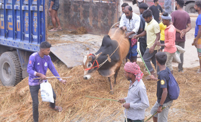 হাট থেকে গরু কিনে শিশু-কিশোররা আনন্দ-উল্লাসে বাড়ি ফিরছে। চট্টগ্রাম নগরীর সিআরবি এলাকা থেকে ছবিটি তুলেছেন উজ্জ্বল ধর