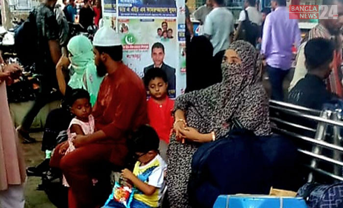 যাত্রাবাড়ী বাসস্ট্যান্ডে ঈদে ঘরমুখী মানুষের ভিড়, ছবি: জিএম মুজিবুর