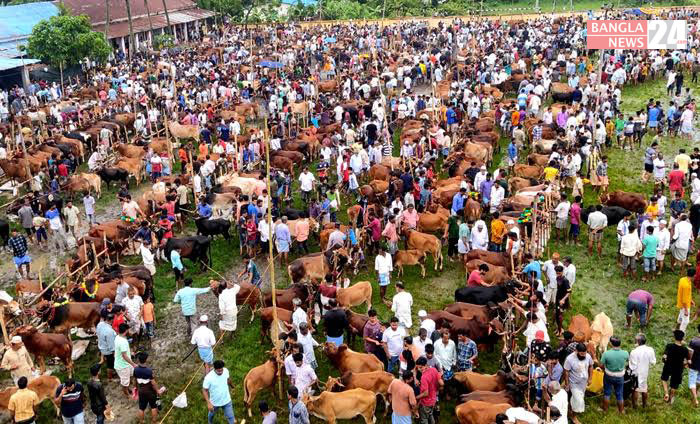 চট্টগ্রাম নগরীর বাইরের হাটগুলোও জমে উঠেছে পশু বেচাকেনায়। ছবিটি হাটহাজারী কাটির হাট বাজার থেকে তোলা, ছবি: বাংলানিউজ