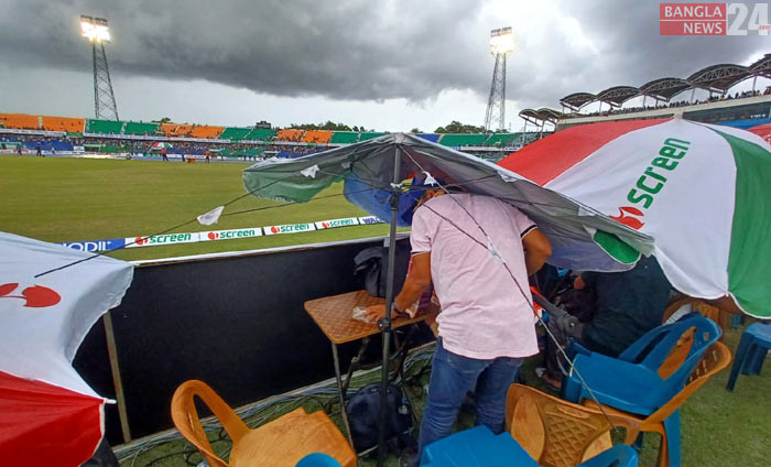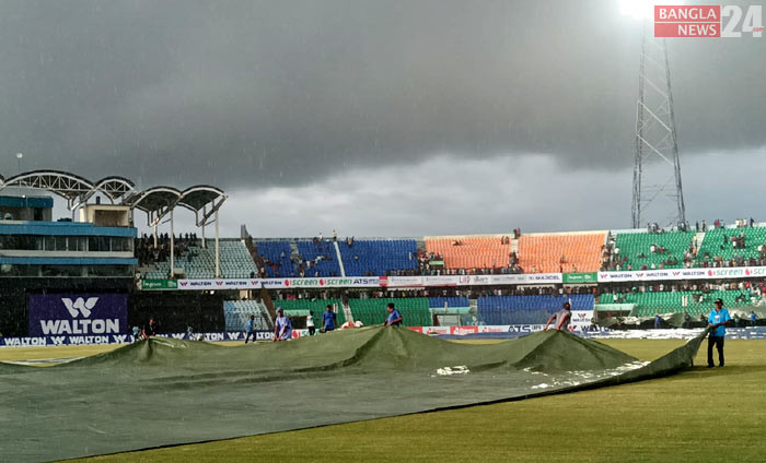 বৃষ্টিতে বন্ধ বাংলাদেশ বনাম আফগানিস্তান ম্যাচ। ছবি: সোহেল সরওয়ার