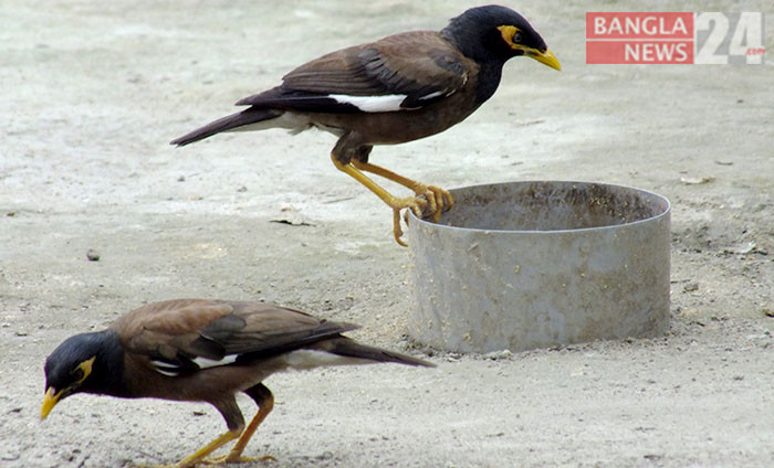 জোড়া শালিক পাখি। পাবনার ঈশ্বরদী রেলস্টেশন এলাকা থেকে ছবিটি তুলেছেন টিপু সুলতান।