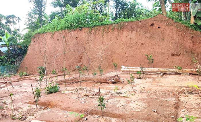 মৌলভীবাজারের সীমান্তবর্তী এলাকায় চলছে টিলা কর্তন। ছবি: বাংলানিউজ