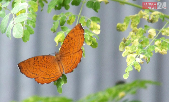মেঘলা দিনে সজনে পাতায় পাখা মেলেছে প্রজাপতি। ঈশ্বরদী পৌর এলাকা থেকে ছবি তুলেছেন টিপু সুলতান