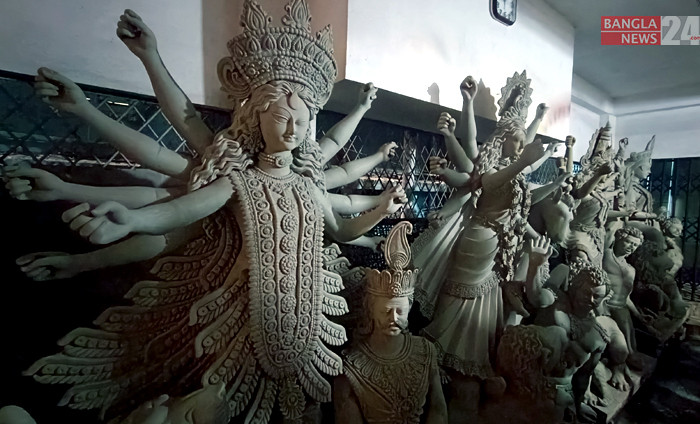 আর ৪০দিন পর হিন্দু সম্প্রদায়ের সর্ববৃহত ধর্মীয় উৎসব দুর্গা পূজা। এরই মধ্যে প্রতিমার কাঠামো তৈরি করা কাজ প্রায় শেষ পর্যায়ে। ছবি: উজ্জ্বল ধর