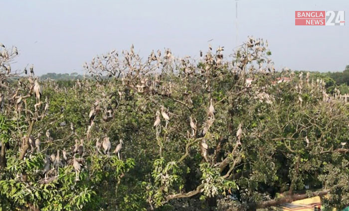 গাছে ঝাঁকেঝাঁকে পরিযায়ী পাখি এসে বাসা বেঁধেছে। ছবিটি নাটোরের রানি ভবানীর রাজবাড়ি থেকে তুলেছেন মামুনুর রশীদ